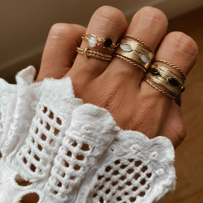 - Bague chaîne fine avec pierre : Onyx