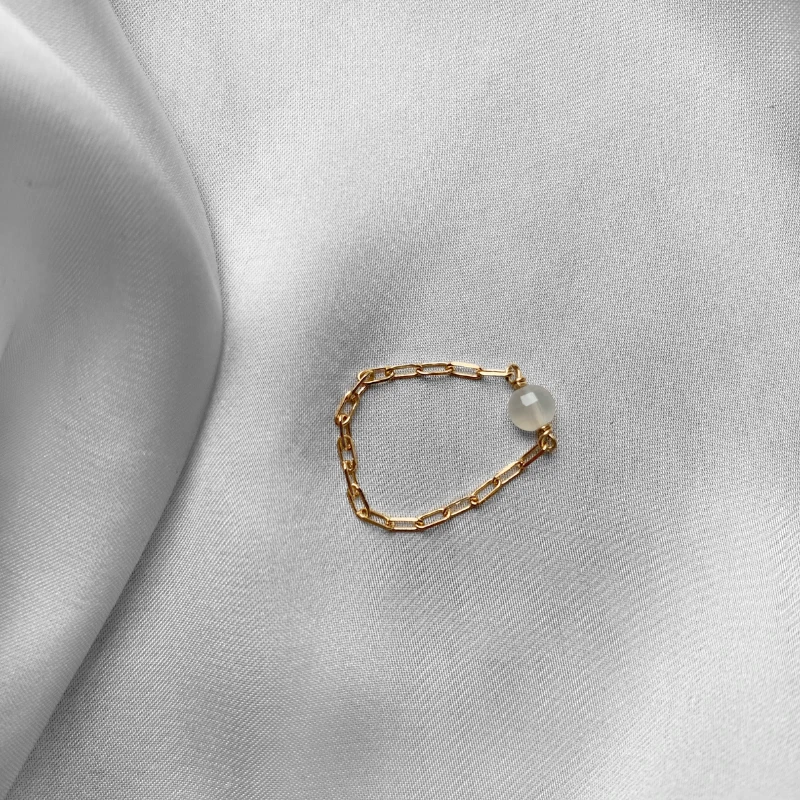 - Bague chaîne fine avec pierre : Pierre de Lune