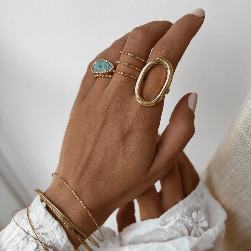 - Bague en plaqué or fin – 5 microns et sa jolie pierre centrale amazonite