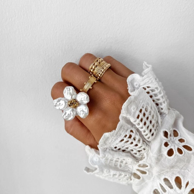 - Bague en forme de fleur, pétales nacrées
