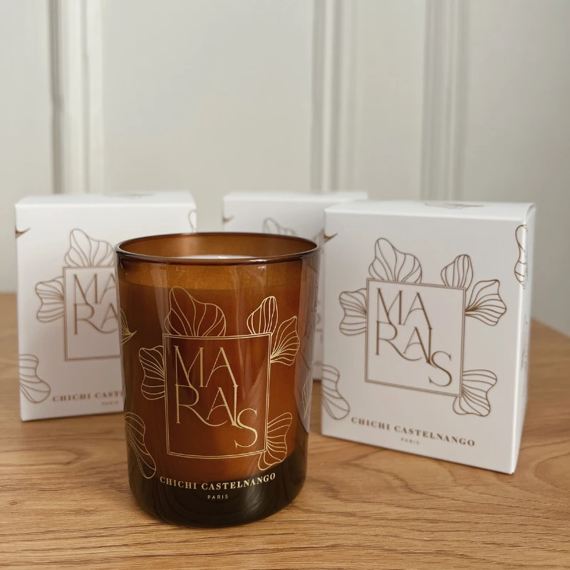 - Verre laqué ambré avec une jolie sérigraphie inspirée de notre iconique modèle Gabrielle
