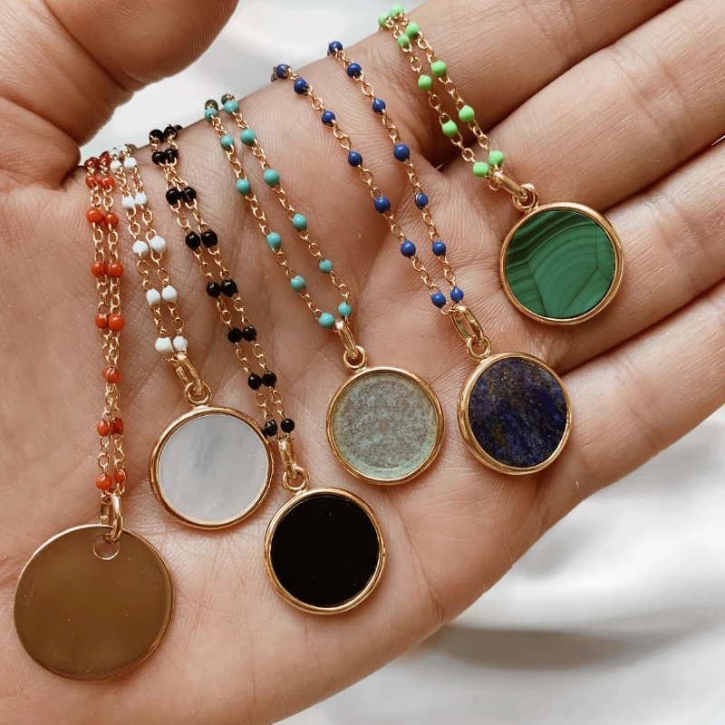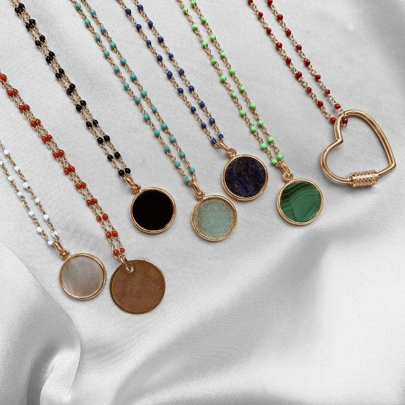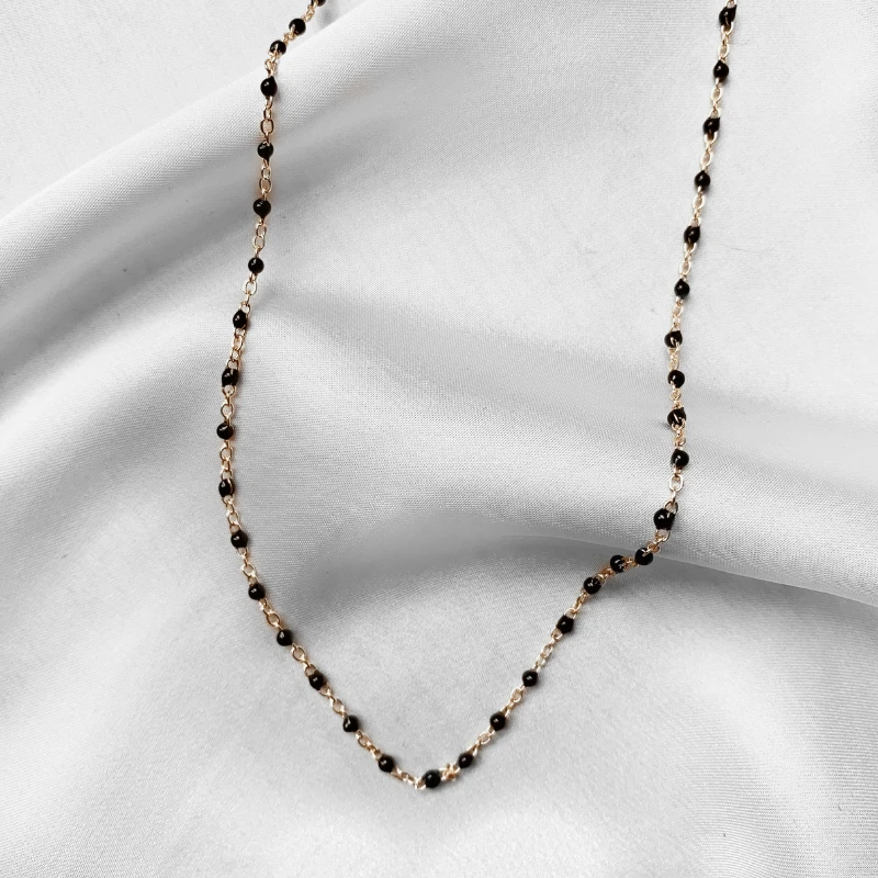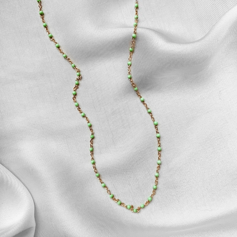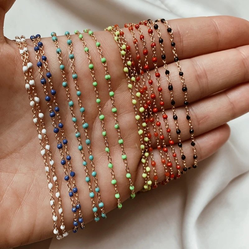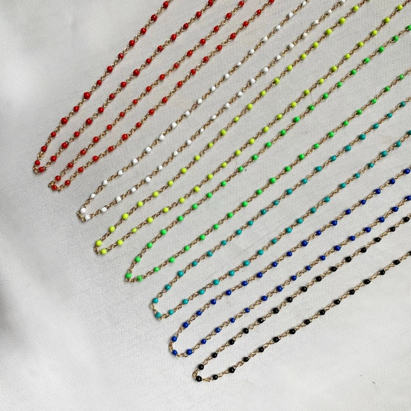 - Chaîne fine dorée avec petites boules colorées en émail