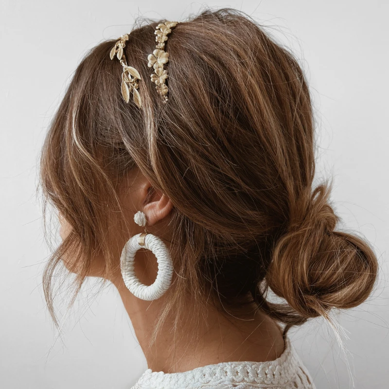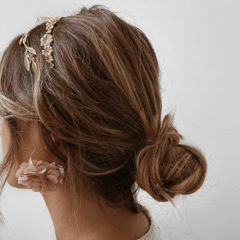 - Bijou de tête à porter avec une coiffure ou les cheveux détachés